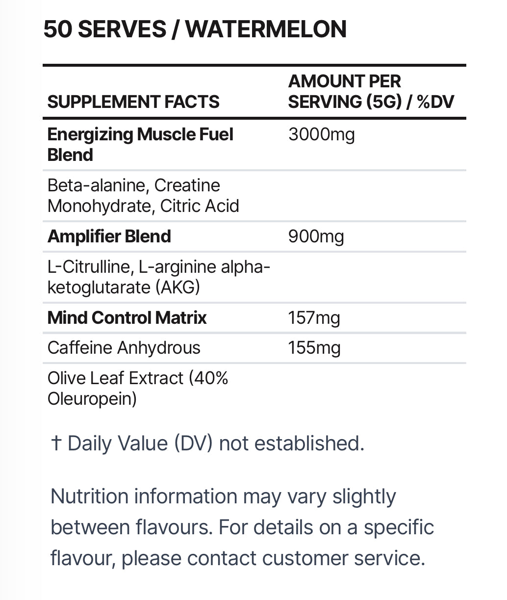Mix 1 scoop with 250–300mL of water and consume 20–30 minutes before training. Do not exceed 2 servings in a 24-hour period. Use consistently alongside a structured training program and balanced diet for optimal results.